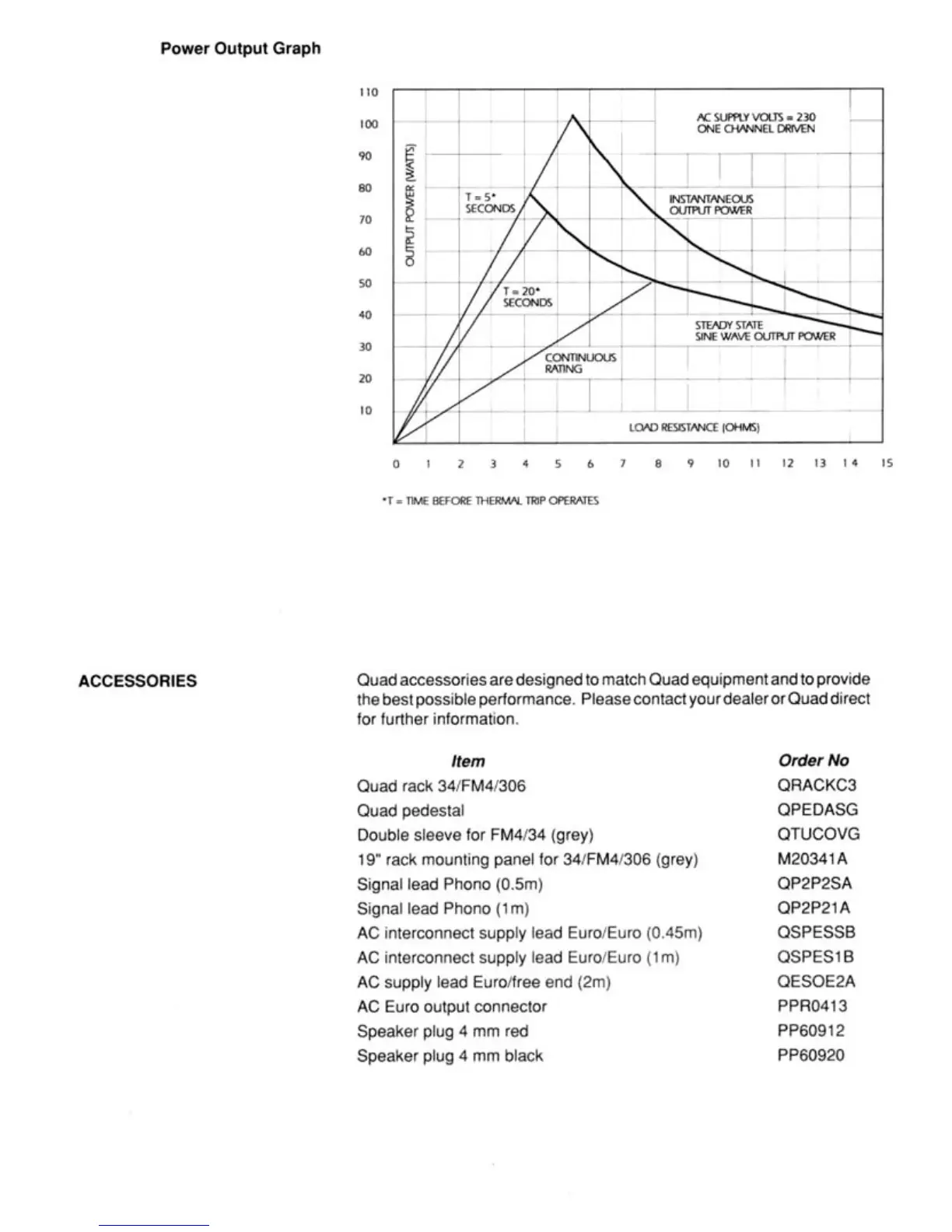 QUAD 306 - Power Output Graph; Optional Quad Accessories List