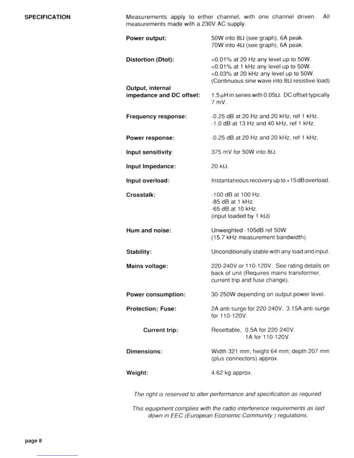 QUAD 306 - Quad 306 Amplifier Specifications