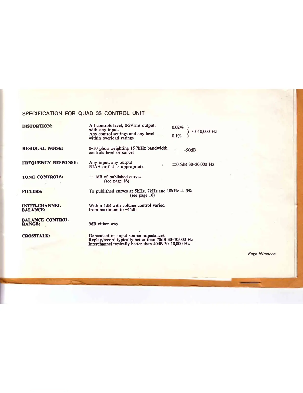 QUAD 33 - SPECIFICATION FOR QUAD 33 CONTROL UNIT