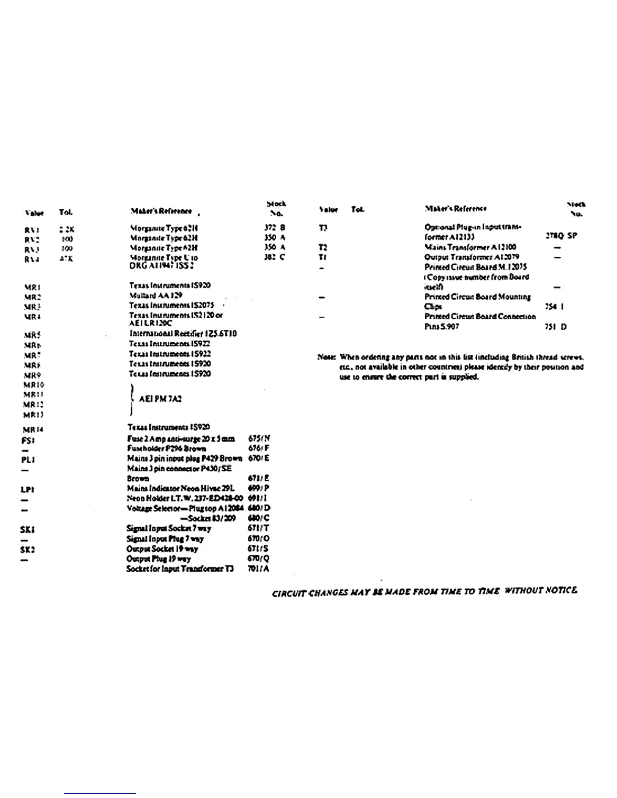 QUAD 50E - Component Identification; Potentiometers and Fuses; Connectors and Indicators; Transformers and Circuit Boards