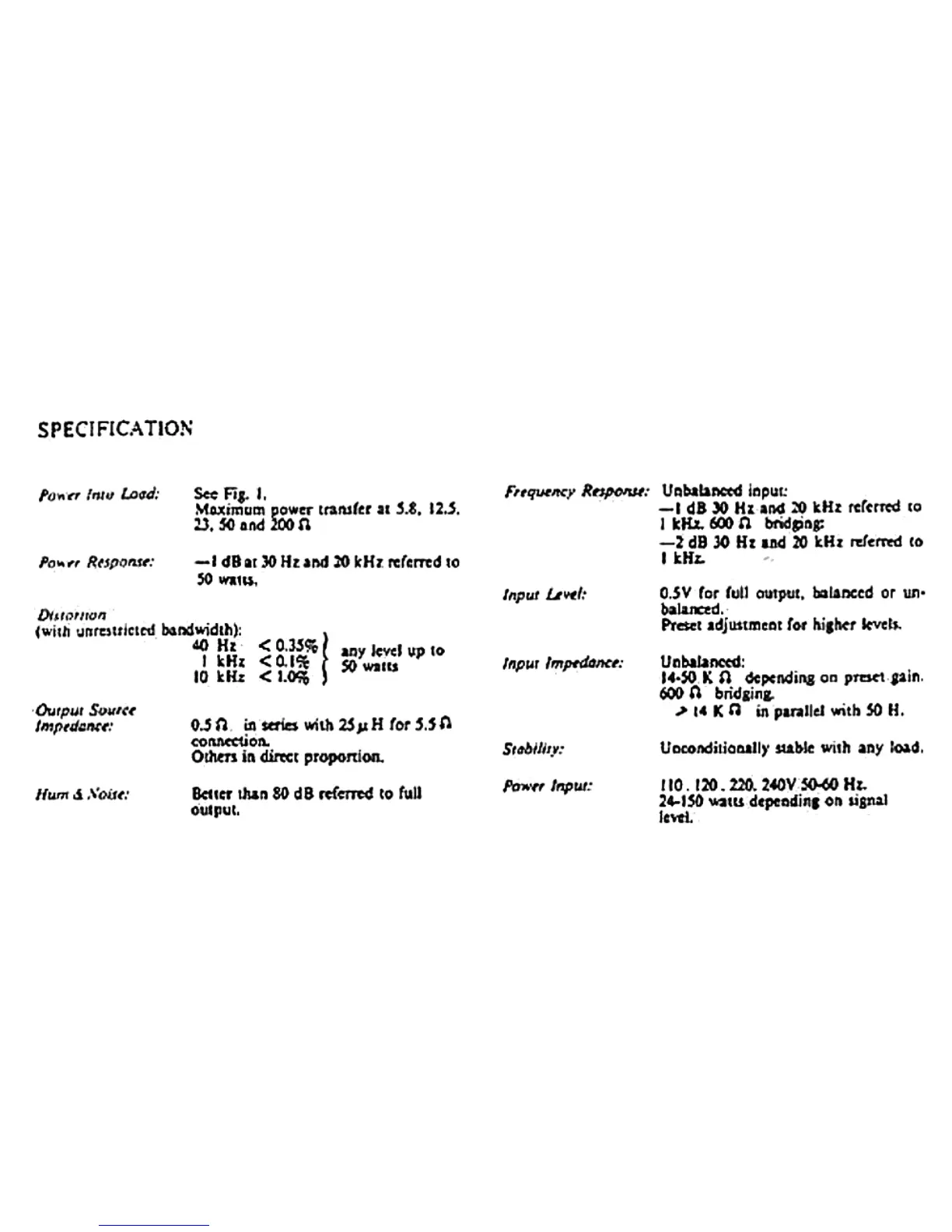 QUAD 50E - Specification; Power Handling and Load; Signal Input and Response; Output Performance
