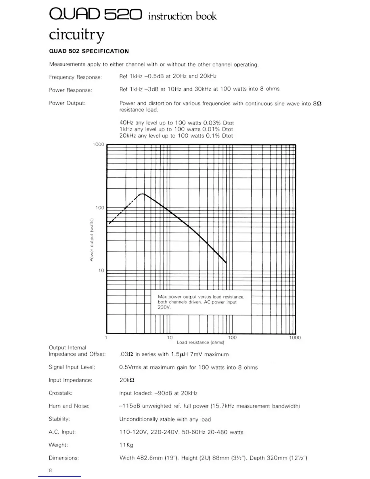 QUAD 520 - Circuitry; QUAD 502 SPECIFICATION