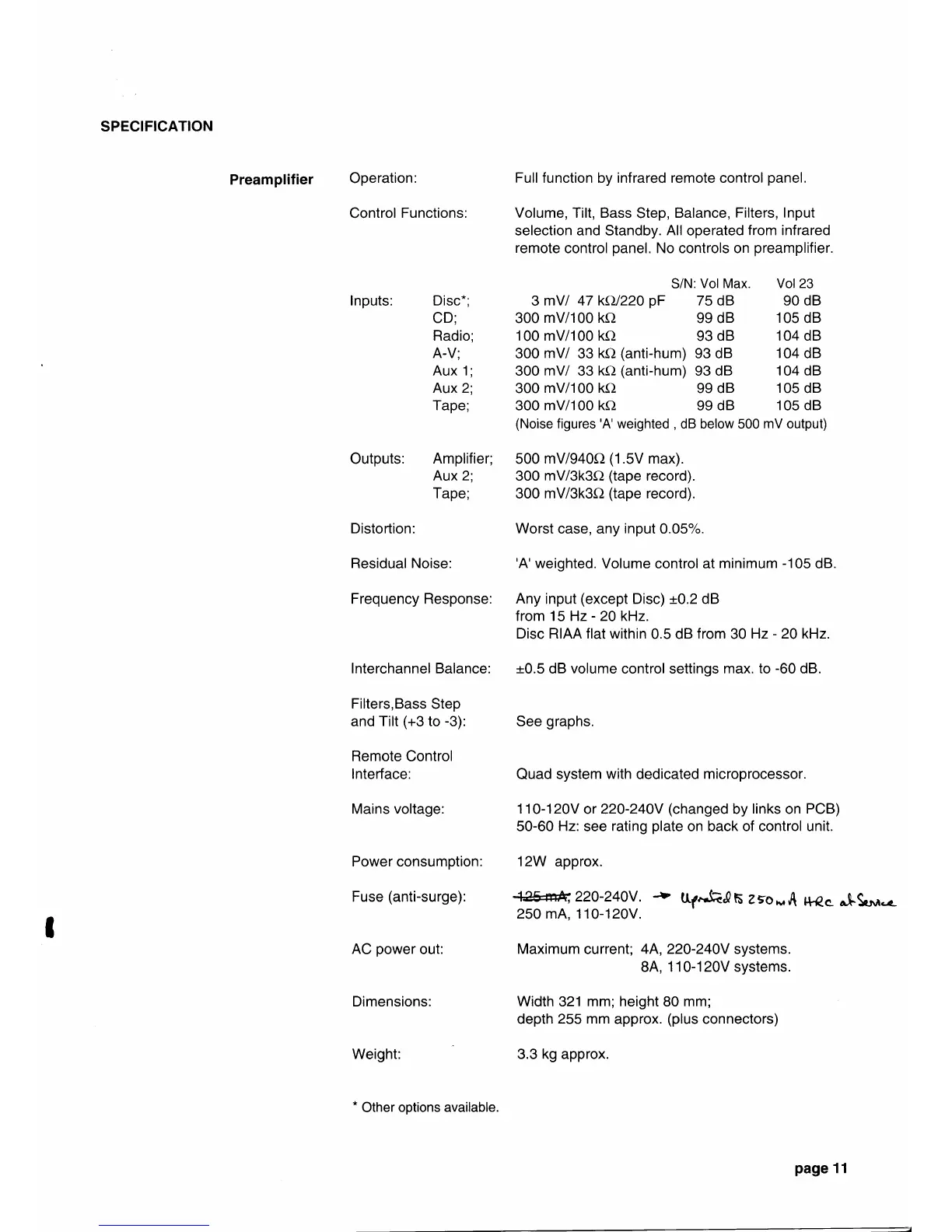 QUAD 66 - Preamplifier Specifications; Preamplifier Operation and Controls; Technical Specifications