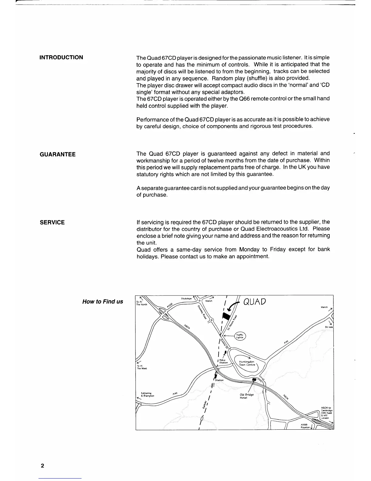 QUAD 67 - Introduction and Support; Introduction; Guarantee Information; Service Information