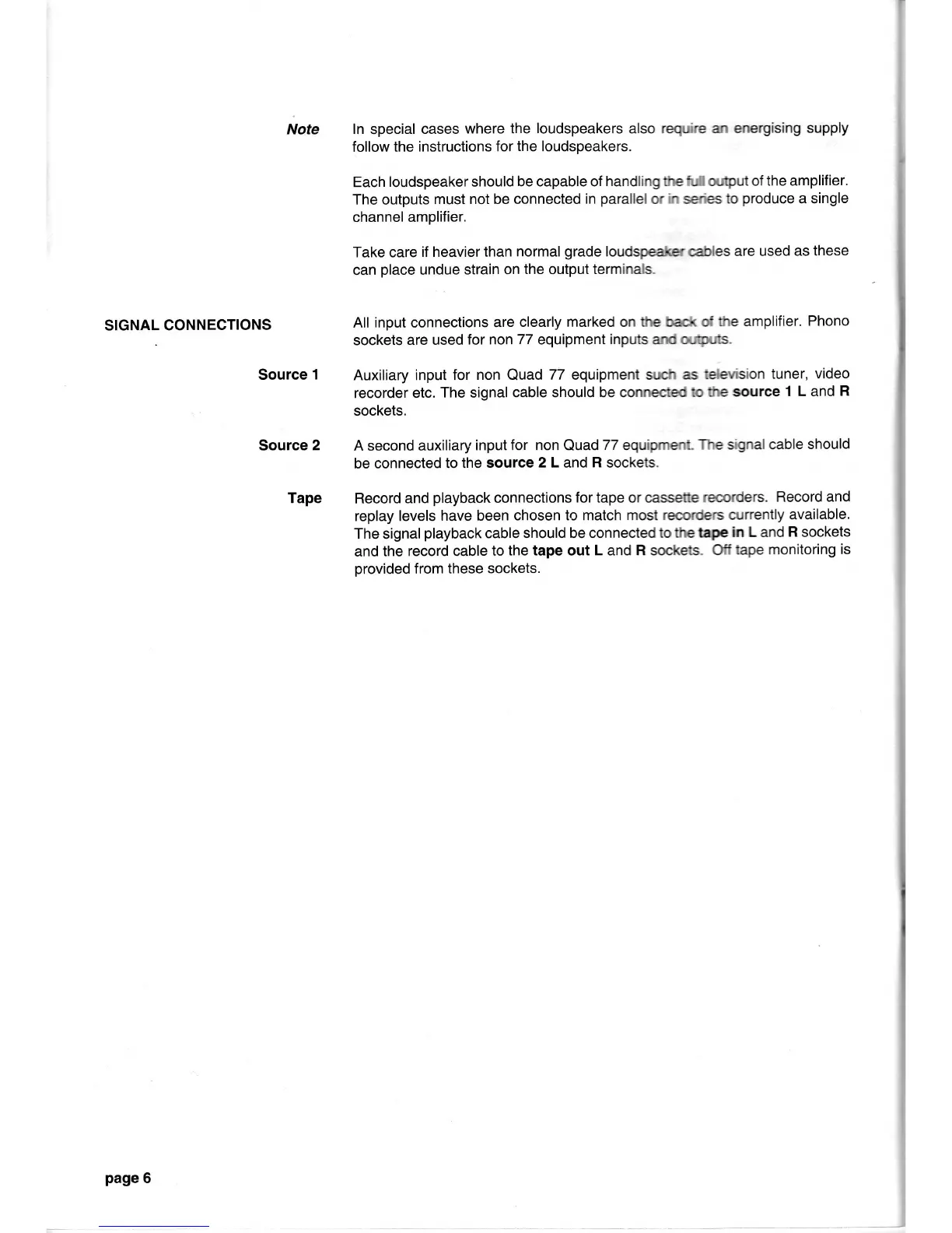 QUAD 77 - Signal Input and Output Connections; Connecting External Sources