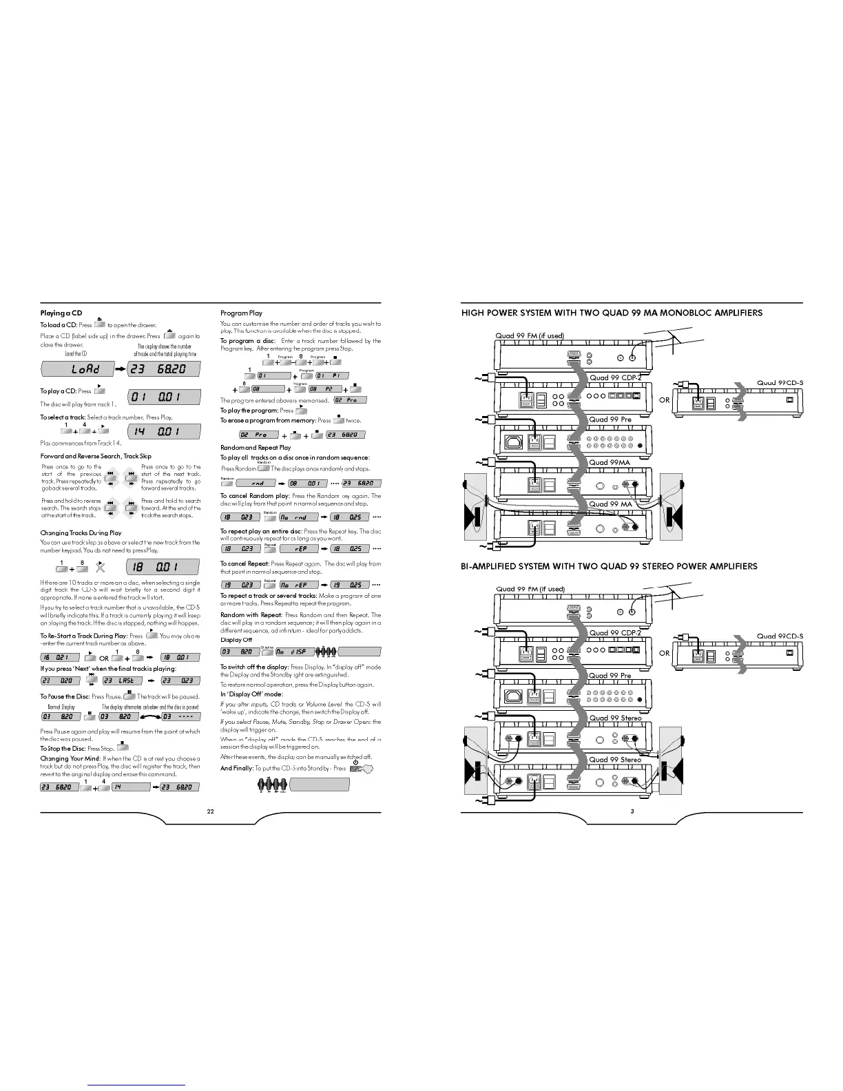 QUAD 99 PRE - CD Player Basic Operation; Playing, Programming, and Searching CDs; Playback Modes and Display Control