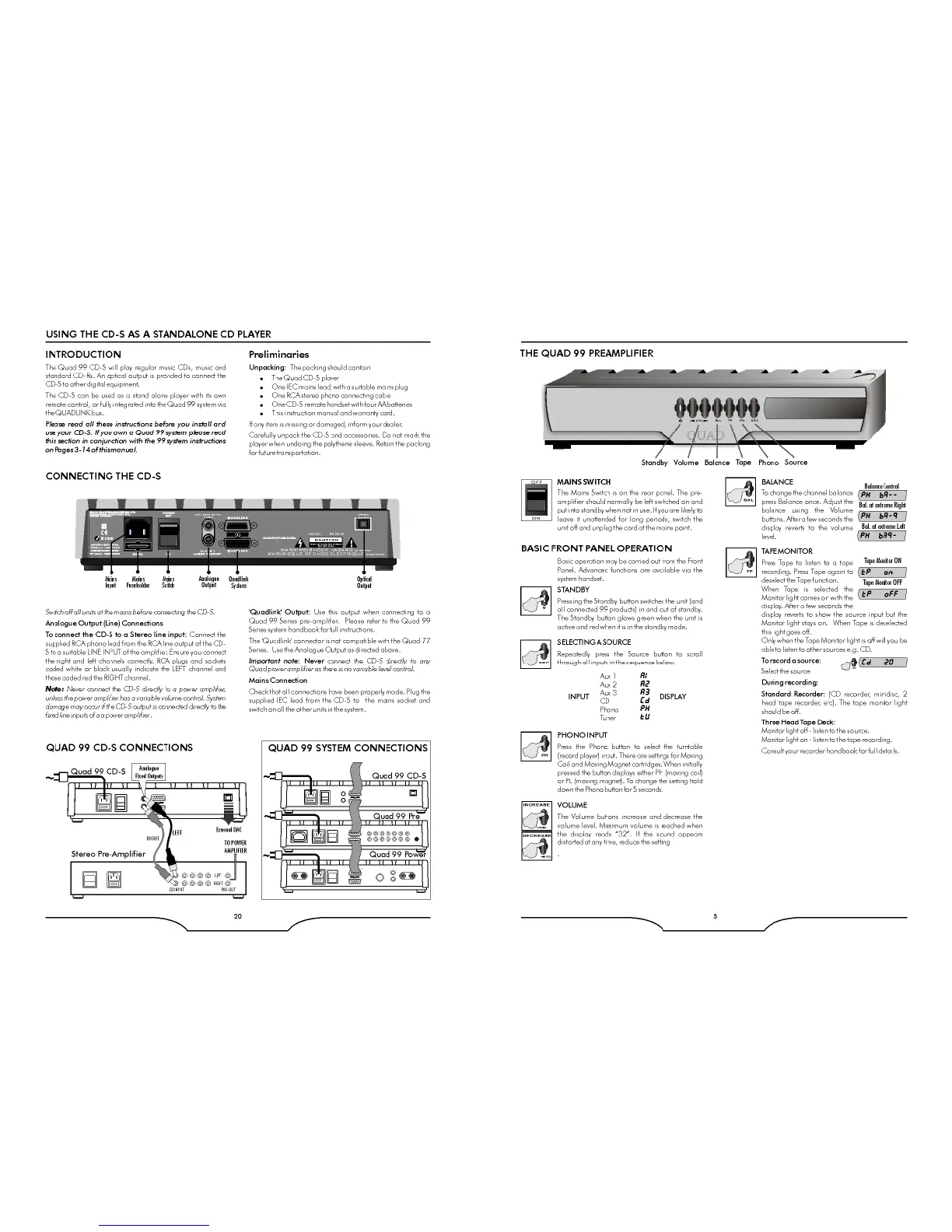 QUAD 99 PRE - CD-S Connectivity and Pre-Amplifier Operation; CD-S Connection Options; QUAD 99 Pre-Amplifier Front Panel Use