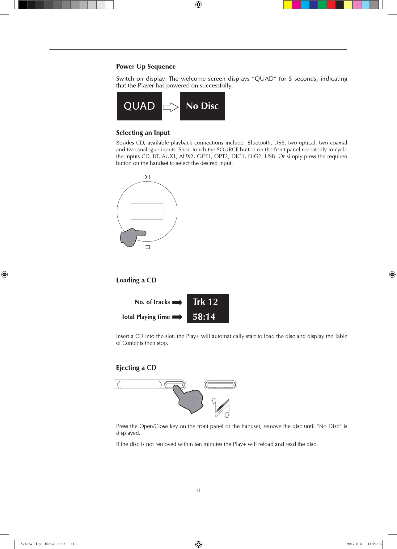 QUAD Artera Play+ - CD AND INPUT SELECTION; Power Up Sequence and Input Selection
