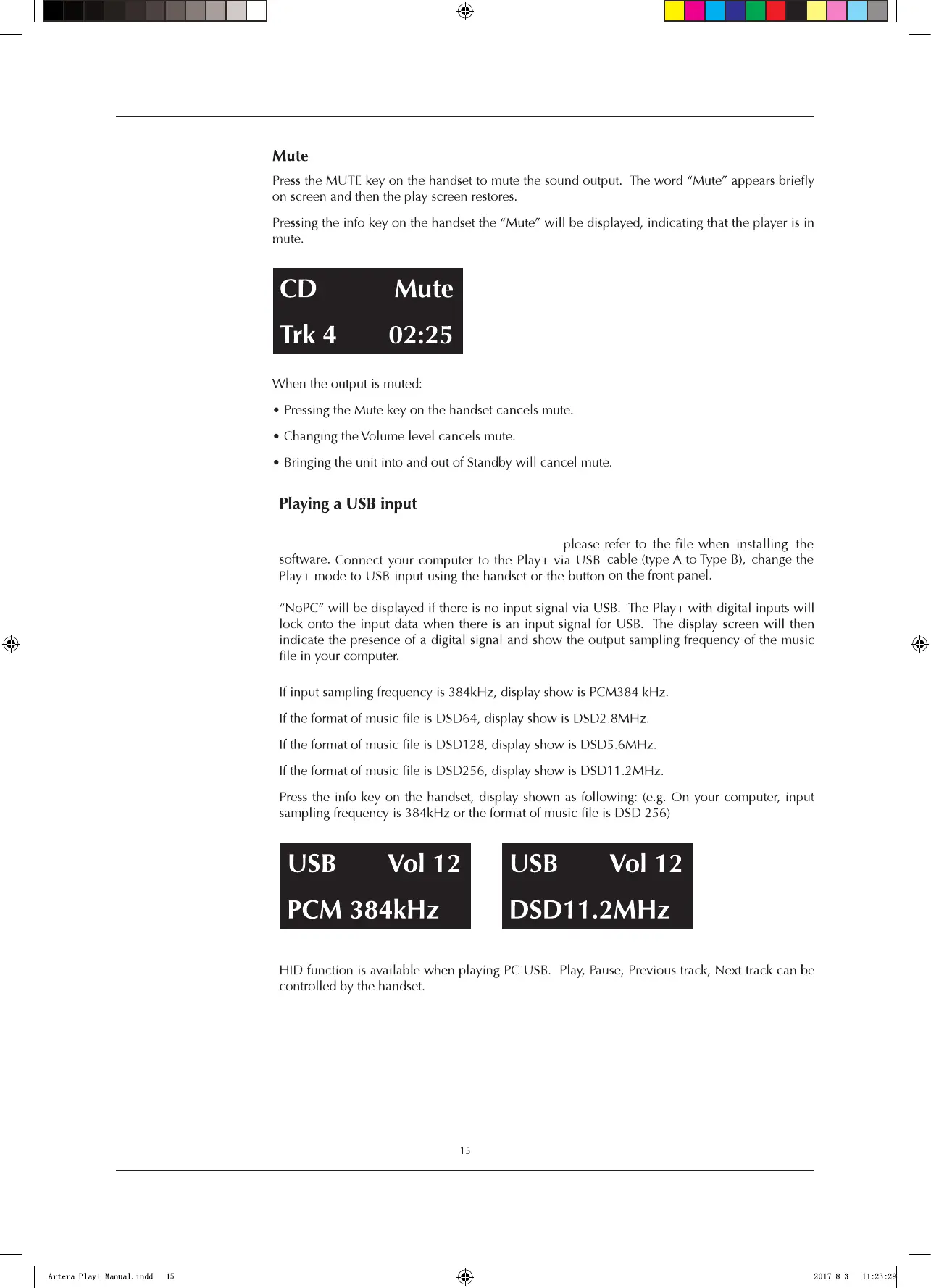 QUAD Artera Play+ - MUTE AND USB INPUT; Playing a USB Input