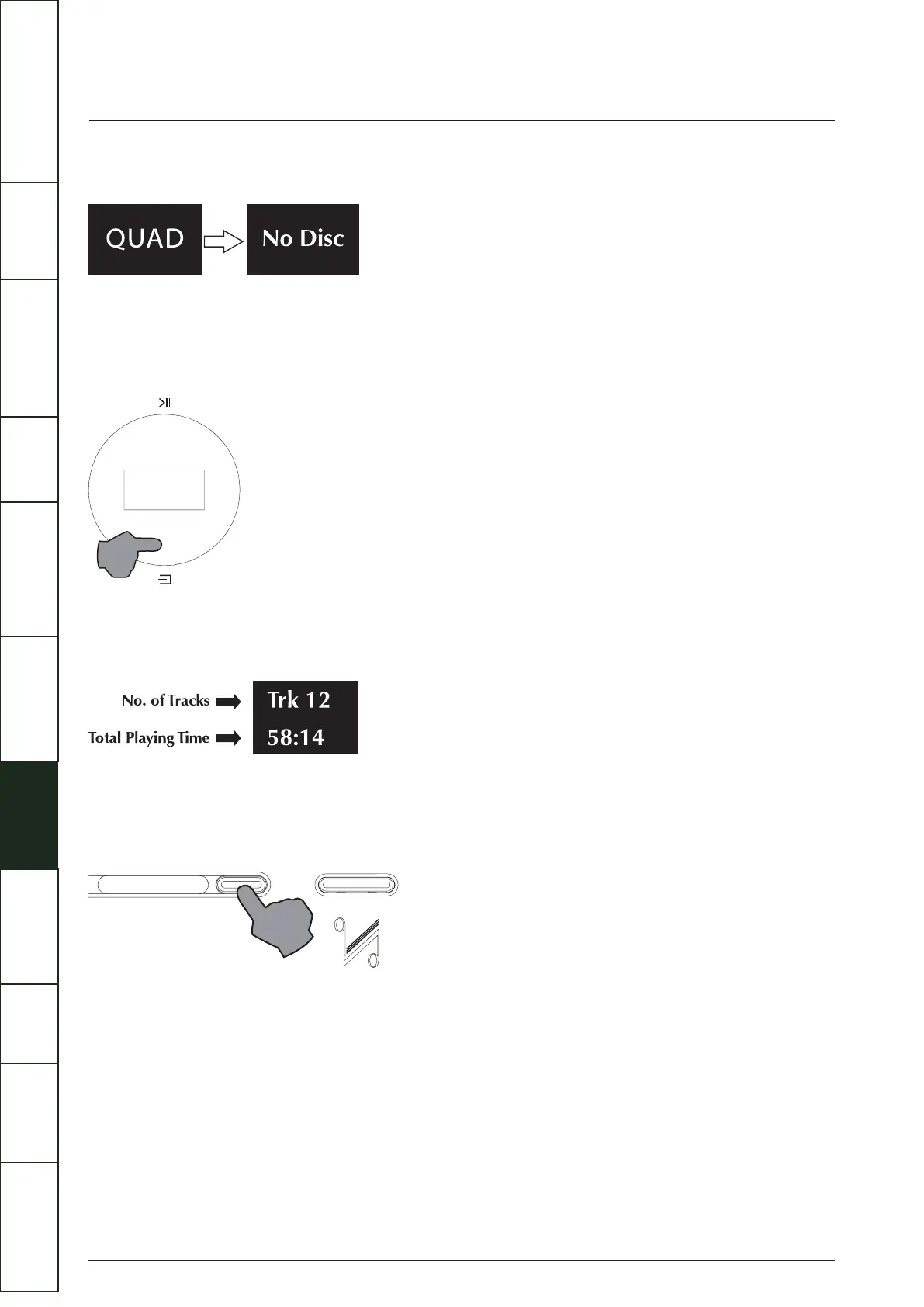 Insert a CD into the slot, the Solus will automatically start to load the disc and display the Table of Contents then stop