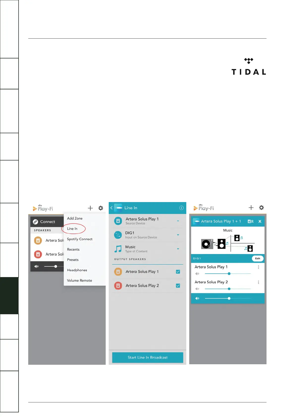 your network. For instance, you can stream the turntable input from your Artera Solus Play to other DTS Play-Fi wireless speakers