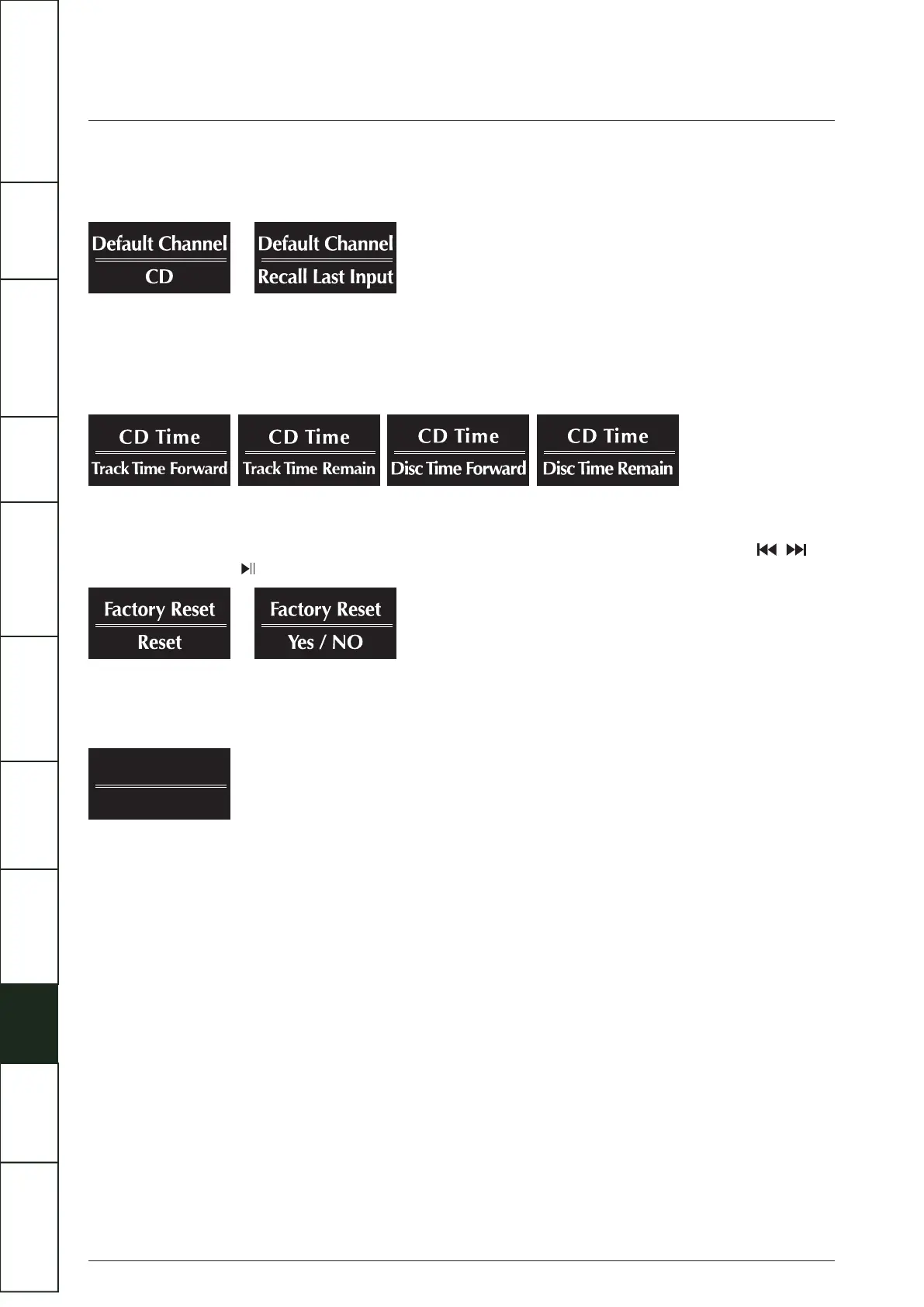Remain’ displays individual track time remaining. ‘Disc Time Forward’ displays the playback time of the whole CD. ‘Disc Time