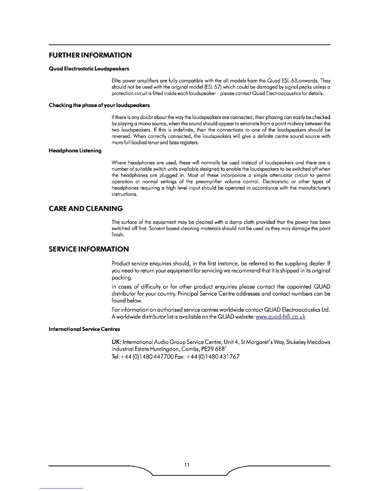 QUAD Elite Series - Quad Electrostatic Loudspeakers; Checking the Phase of Your Loudspeakers; Headphone Listening