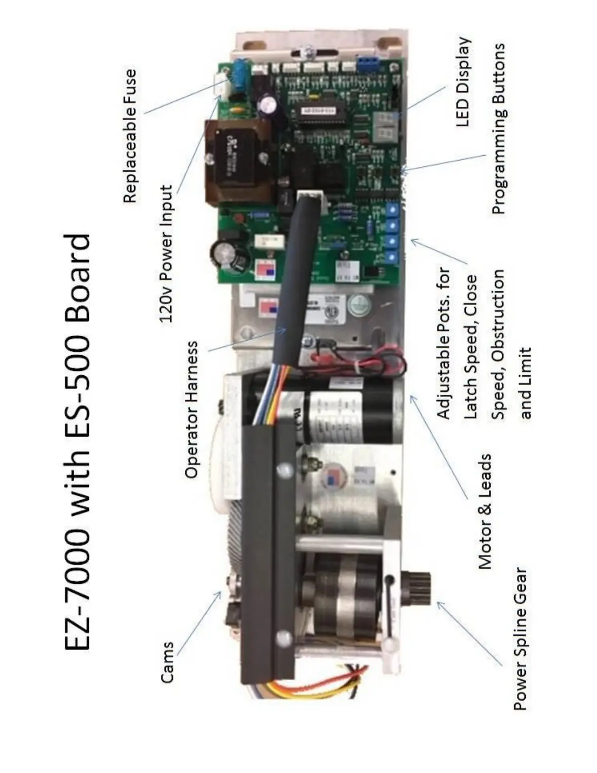 QUAD EZ-7000 - EZ-7000 with ES-500 Board Components; Cams Identification; 120 v Power Input Location; Adjustable Potentiometers
