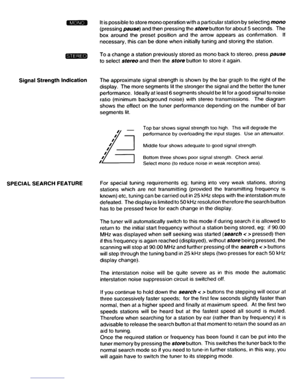 QUAD FM66 - Signal Strength Indication; Special Search Feature