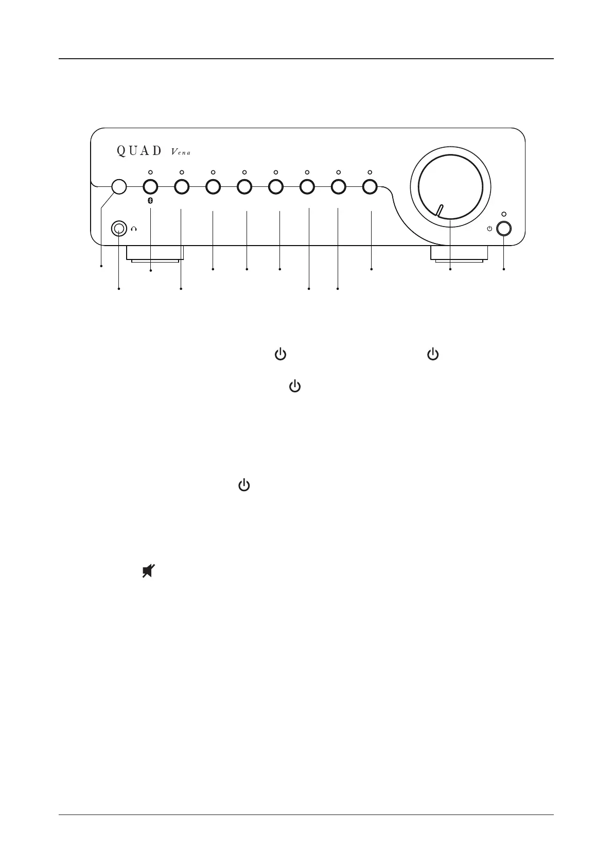 Vena II will be in standby mode when powered on. The indicator on front panel is lit. Press button to bring Vena II out of