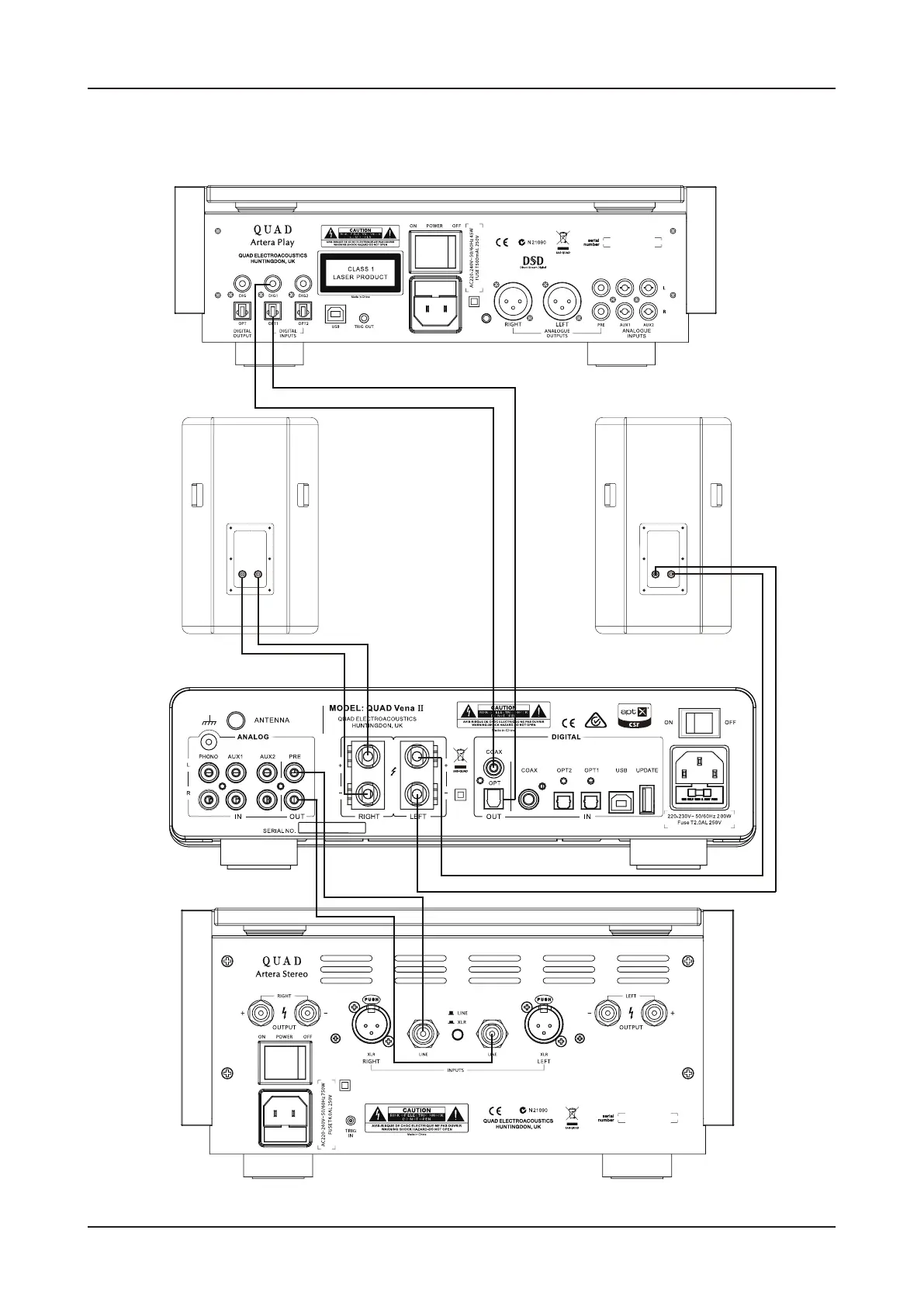 QUAD Vena II - Output Connections Diagram; Loudspeaker Output Wiring; Connection to Artera Play; Connection to Artera Stereo