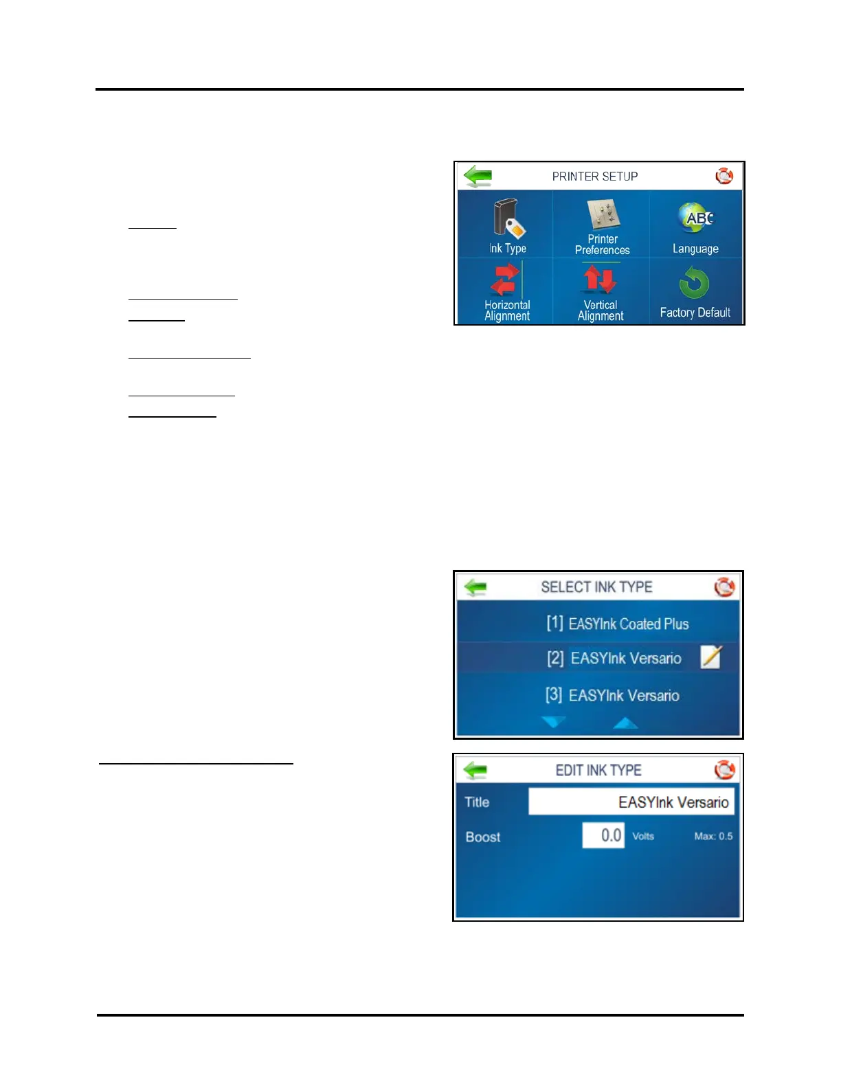 Pressing Ink Type, from the Printer Setup screen, opens the