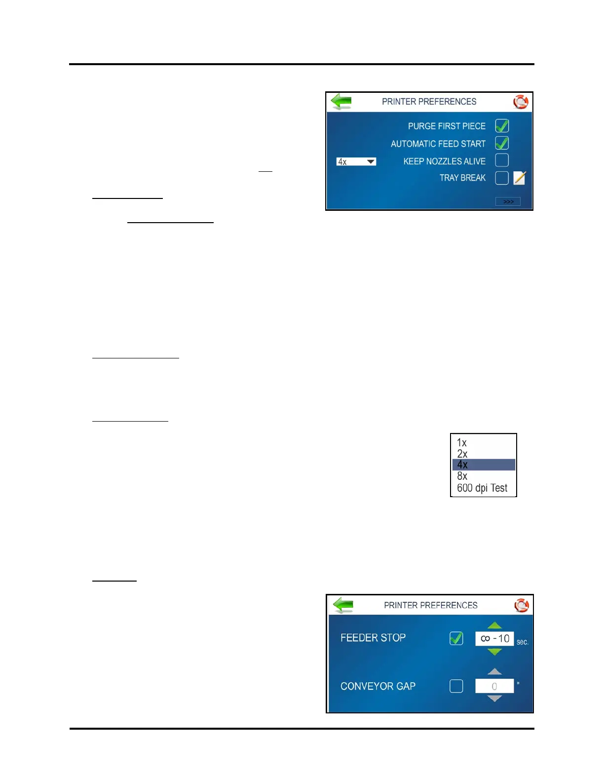 PRINTER PREFERENCES Menu