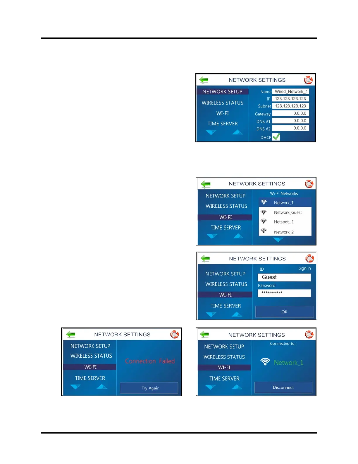 NETWORK SETTINGS Menu (NETWORK & WiFi SETUP)
