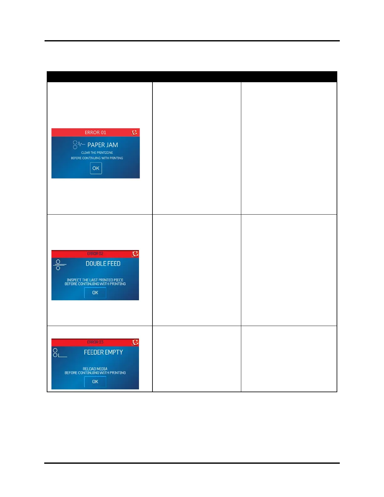 FEEDER EMPTY (ERROR 03)