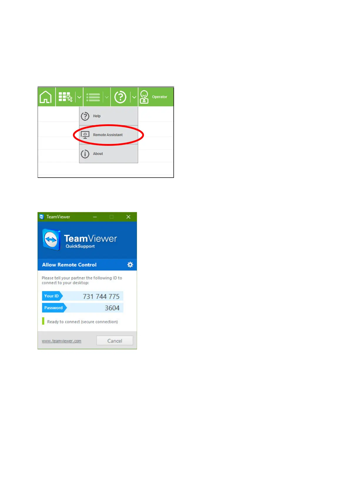 Remote Assistant allows the machine’s PC to be remotely accessed by an engineer