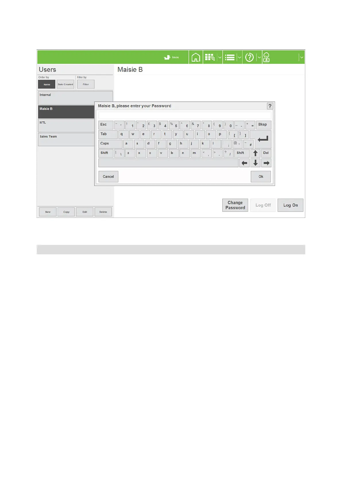3 Enter the password with on-screen keypad and press Return. The user has