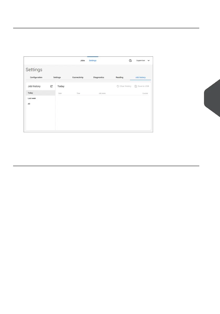 The Jobb history is displayed on the touch screen. With [Save to USB], you save the Job