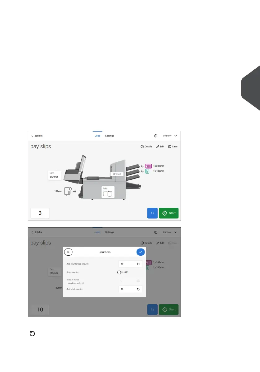• Job counter (as shown), the daily job counter: number of mail sets that have been
