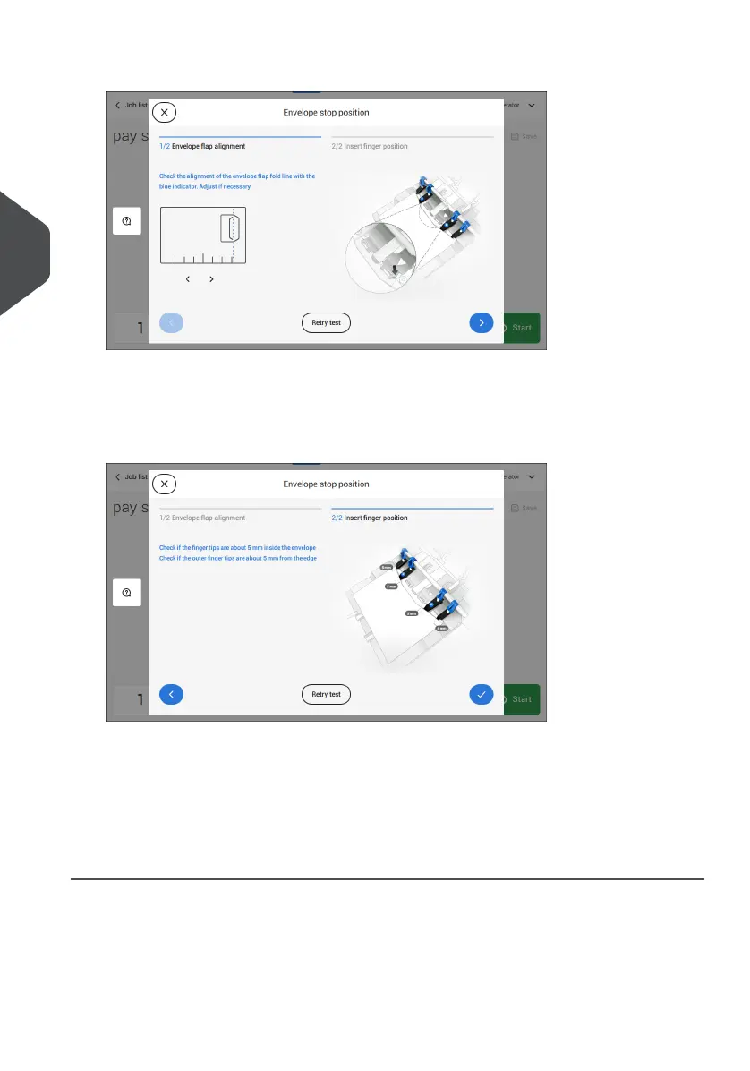 Tap the button [Retry test] to fetch another envelope (Note: the upper unit has to be
