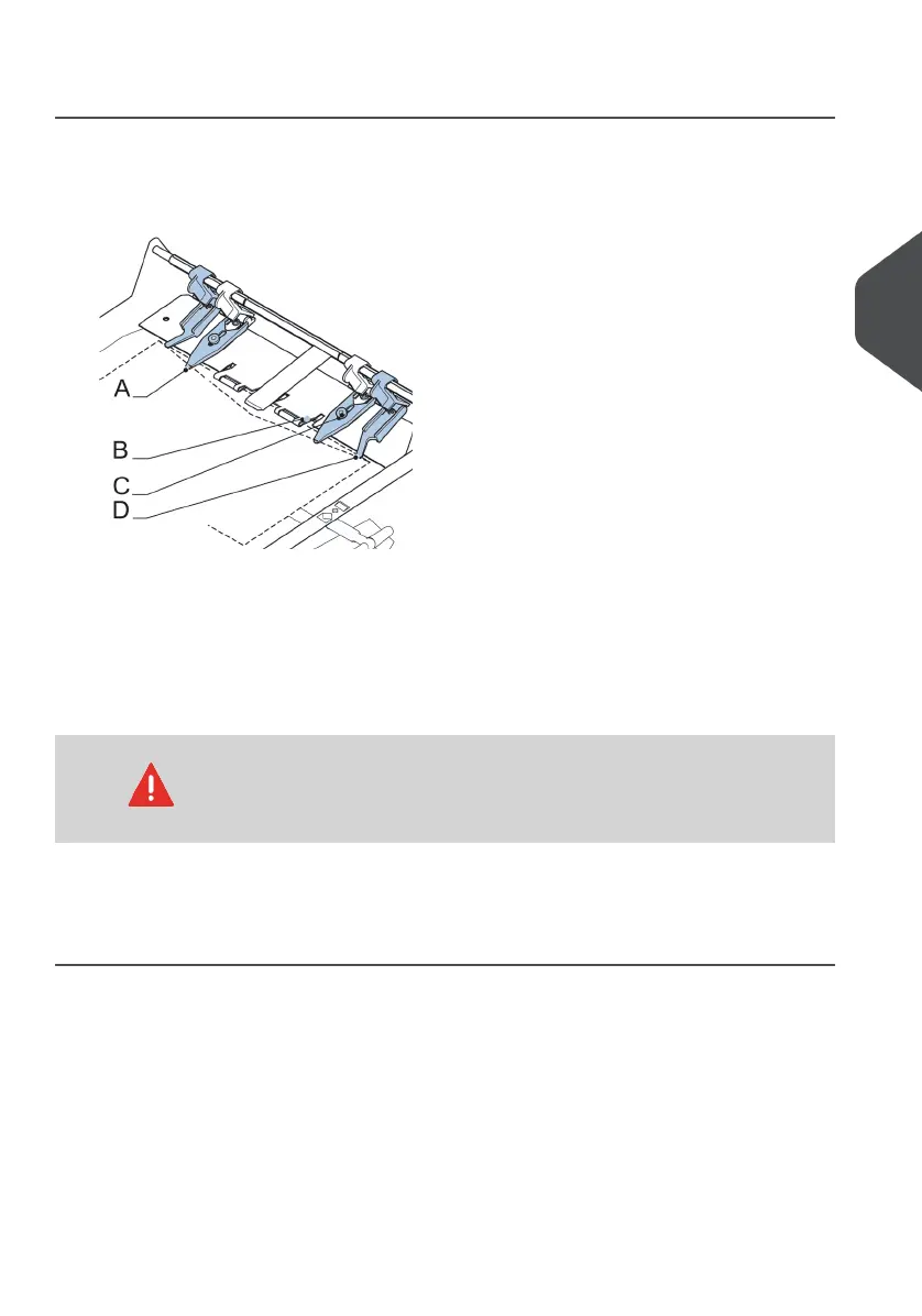 2. Adjust each finger A so that the tip enters about 5 mm (0.2 inch) into the envelope.