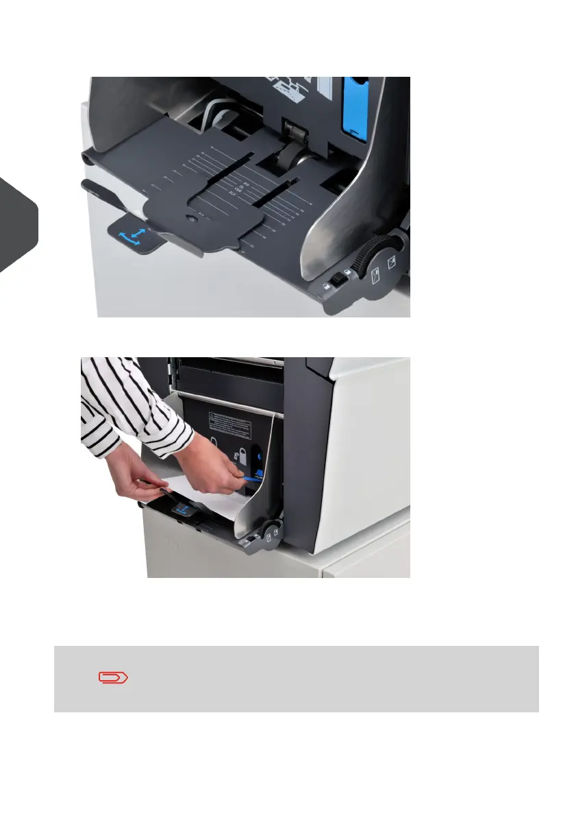 9. Pull down lever D and insert one envelope up to the stoppers. The position of the