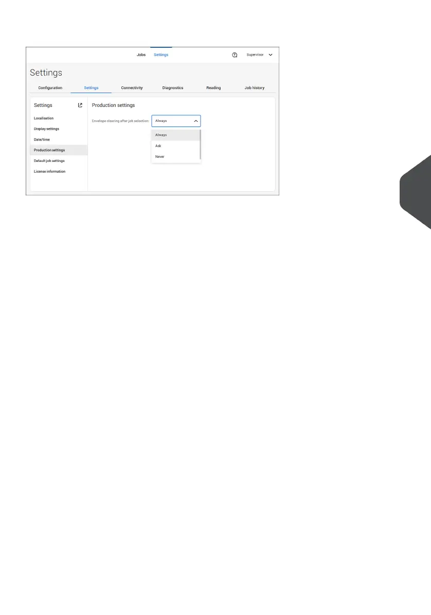 The Production Settings part of the Settings Menu covers settings regarding the clearing