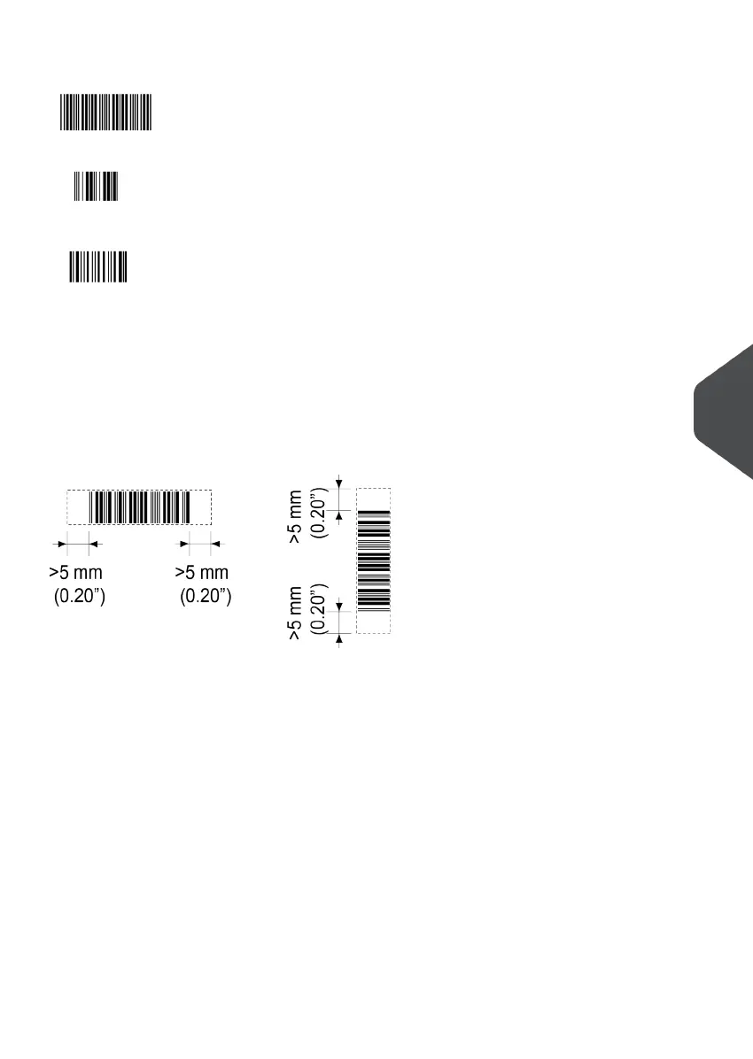 - Quiet zone (free white space area): 5 mm (0.2").