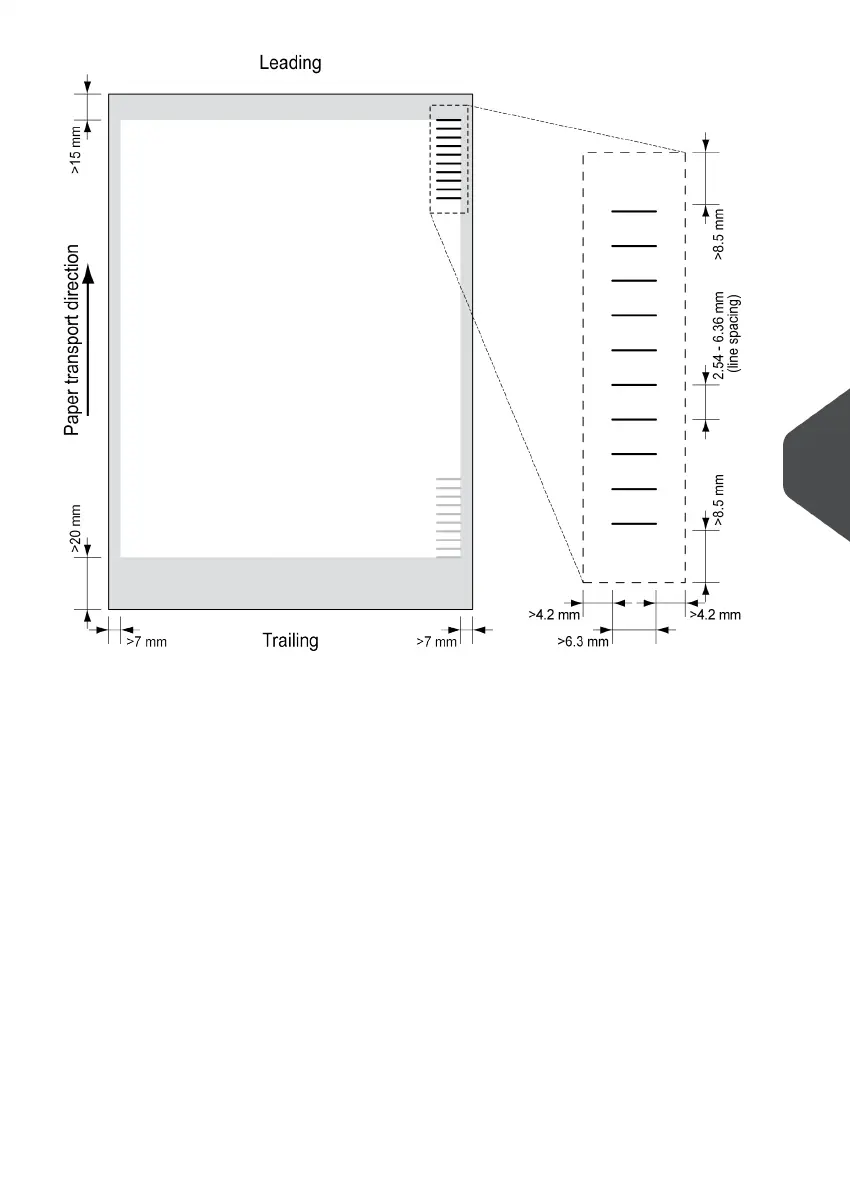 Minimum line thickness of a mark: 0.2 mm (0.008 inch).
