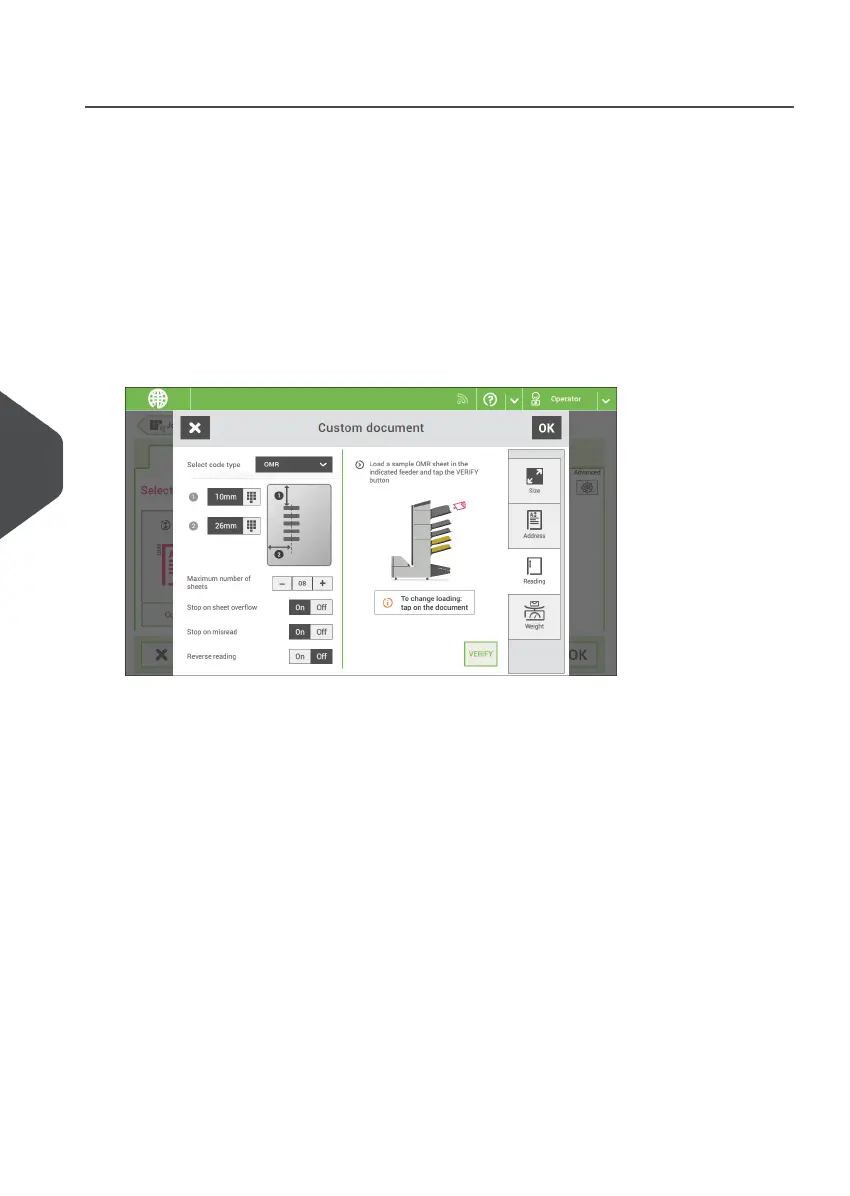 11. Tap [Verify] to read an example sheet to check the correct reading of the OMR marks.