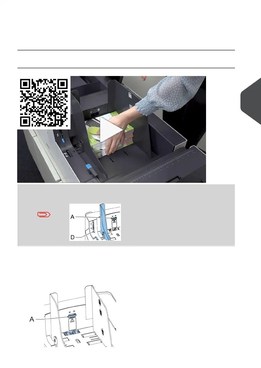 2. Adjust the feeder tray side guides B by turning the thumbwheel C.