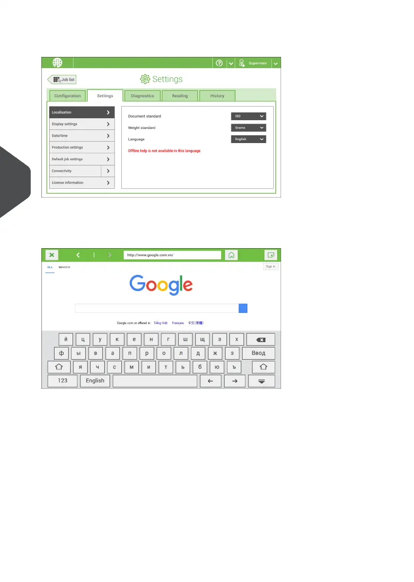 Tap [Localisation] if you want to change the document standard or the language.