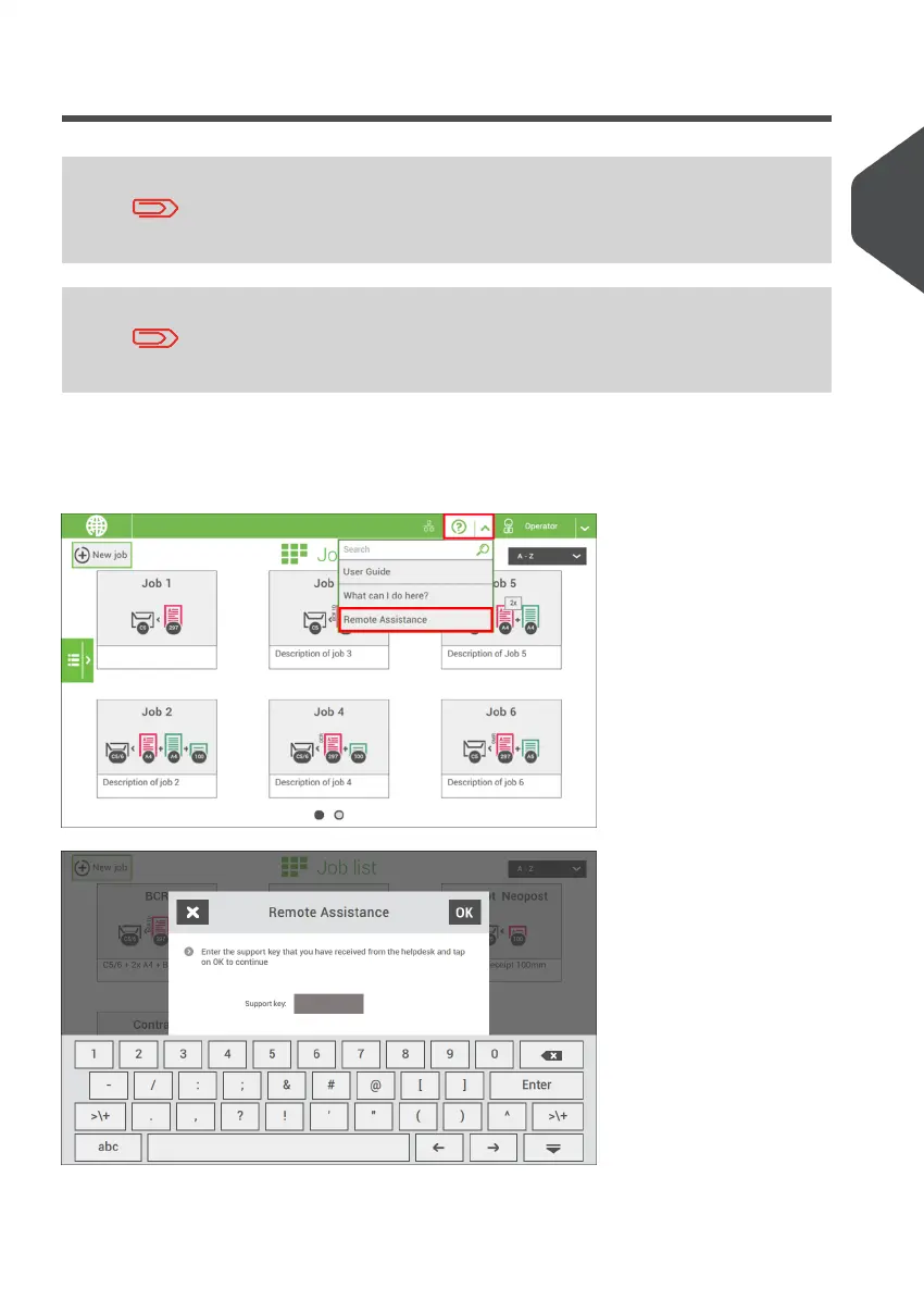 screen can be entered by tapping on the "Remote Assistance" button in the Help menu.