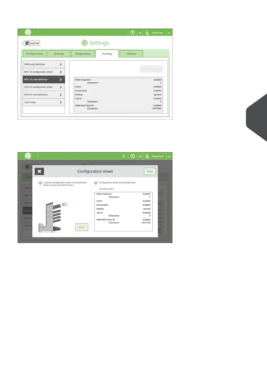 result is visible in this screen, but also in the BCR 2D code definition screen. See Reading