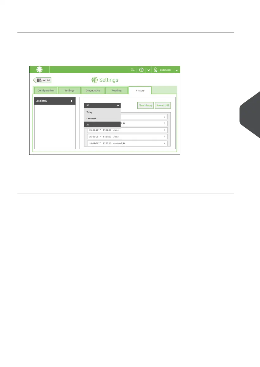 The history is displayed on the touch screen. With [Save to USB], you save the history in