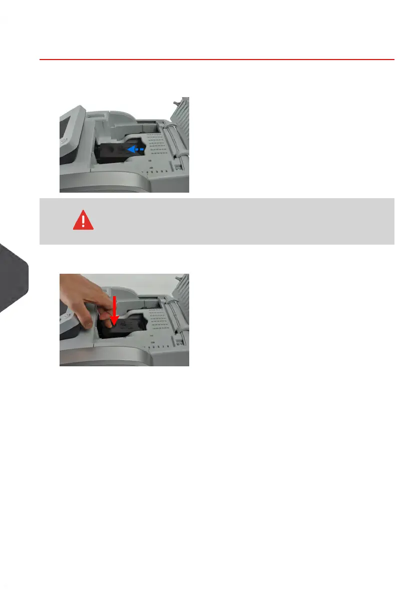 2. Press down on the indent on top of the ink cartridge to disengage it.
