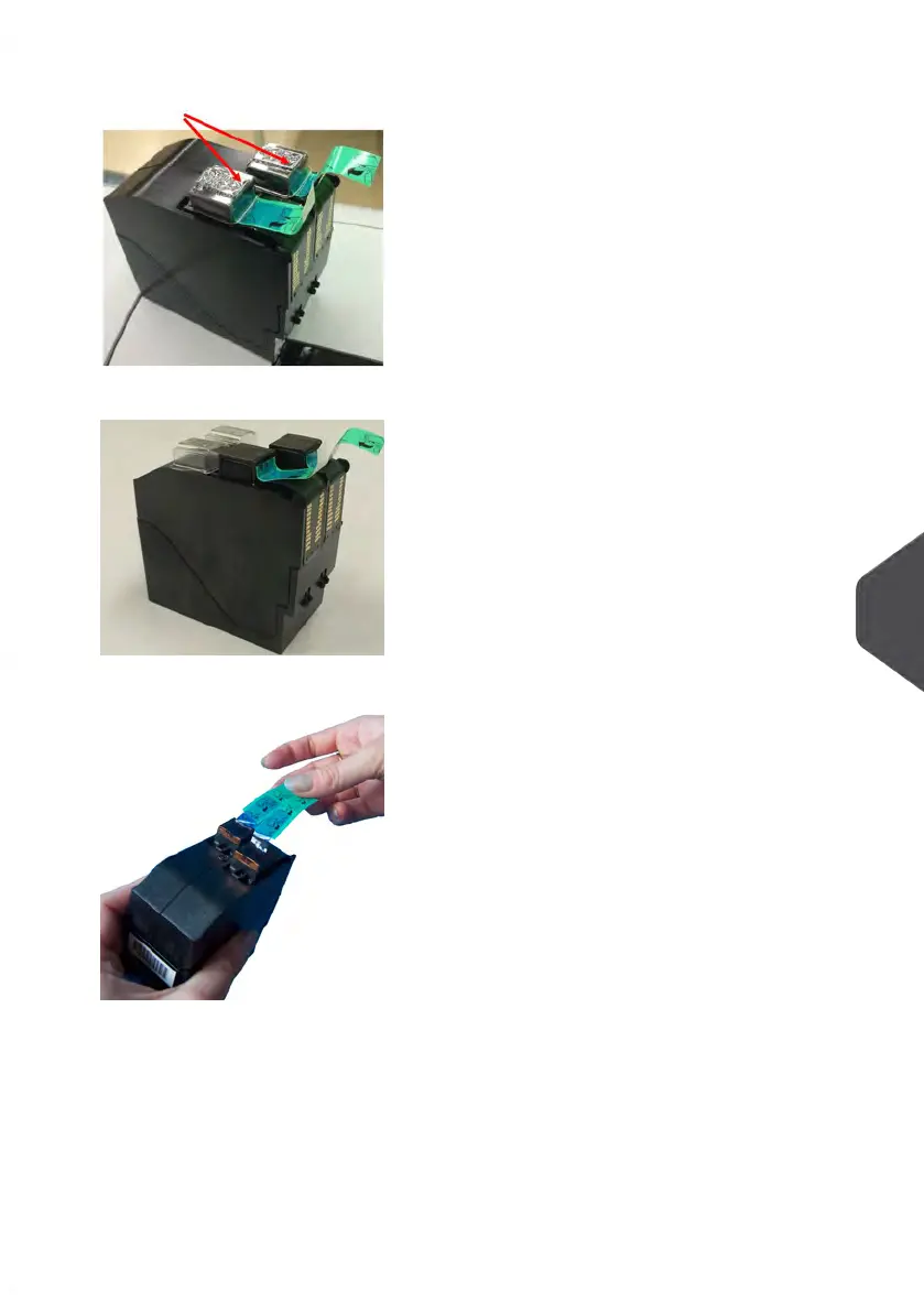 5. Remove the protective strips from the new ink cartridge.