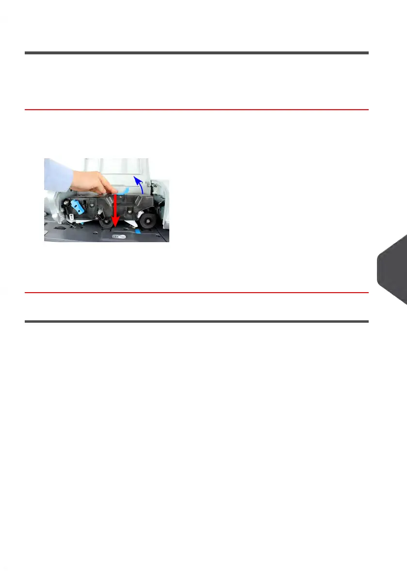 1. Open the Auto-Feeder cover, press the upper blue handle to raise the drive assembly.