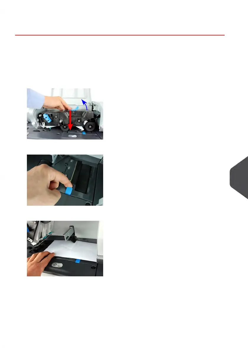 2. On model without sealer, hold the two blue levers to raise the mail path guides and