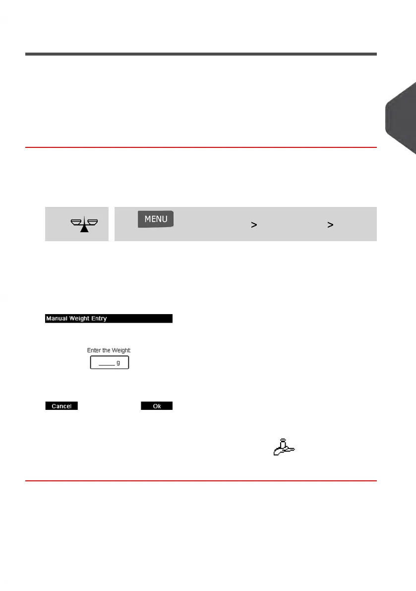 The home screen displays the Manual Weight Entry icon ( ) and the weight