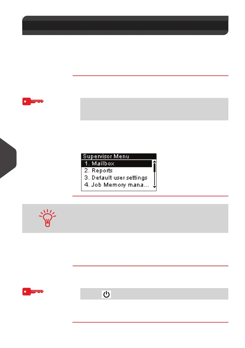 When you are logged in as supervisor, only the supervisor menu is available. Printing