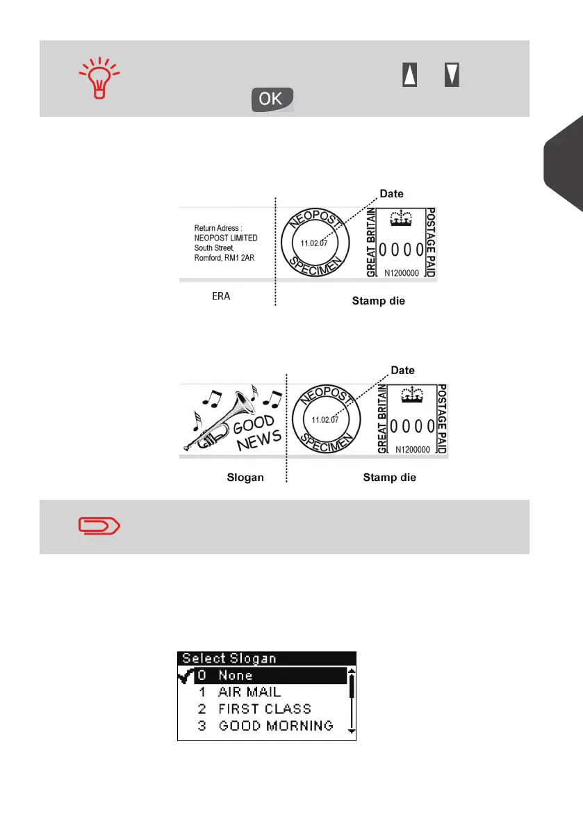 The Mailing System can contain up to 10 slogans (8 are pre-