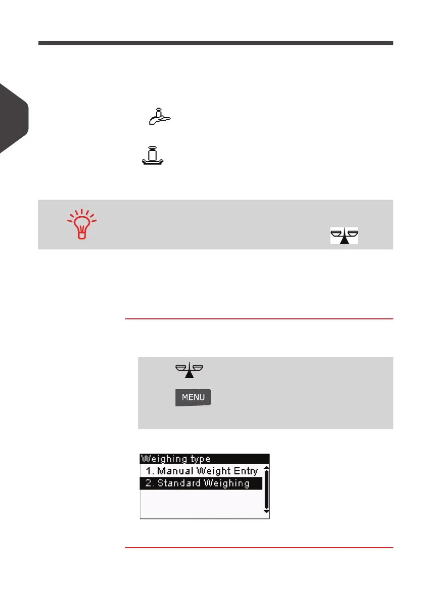 In this mode, you enter the weight manually (see p.49), if you know it.