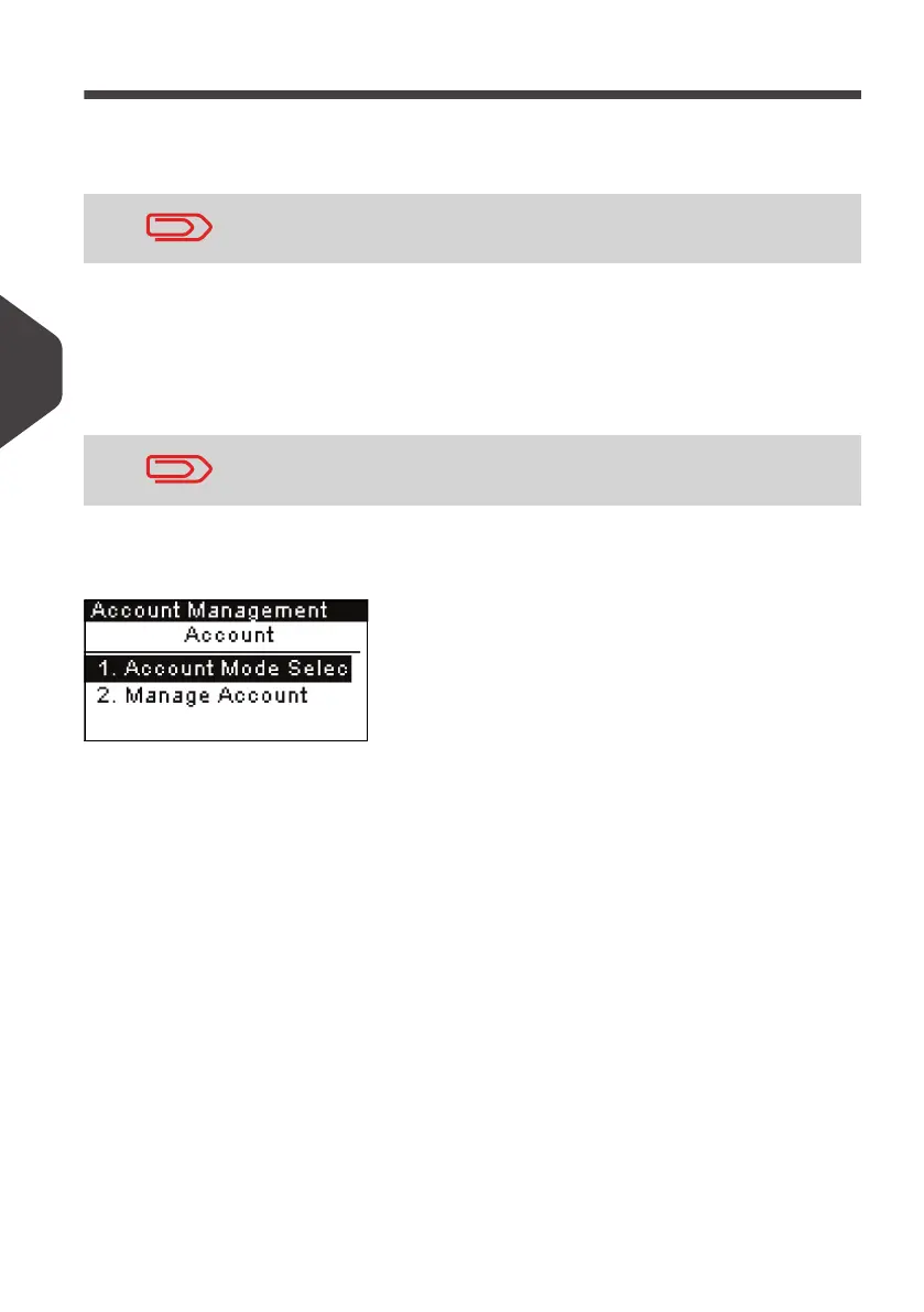“Account” Mode Management Menu